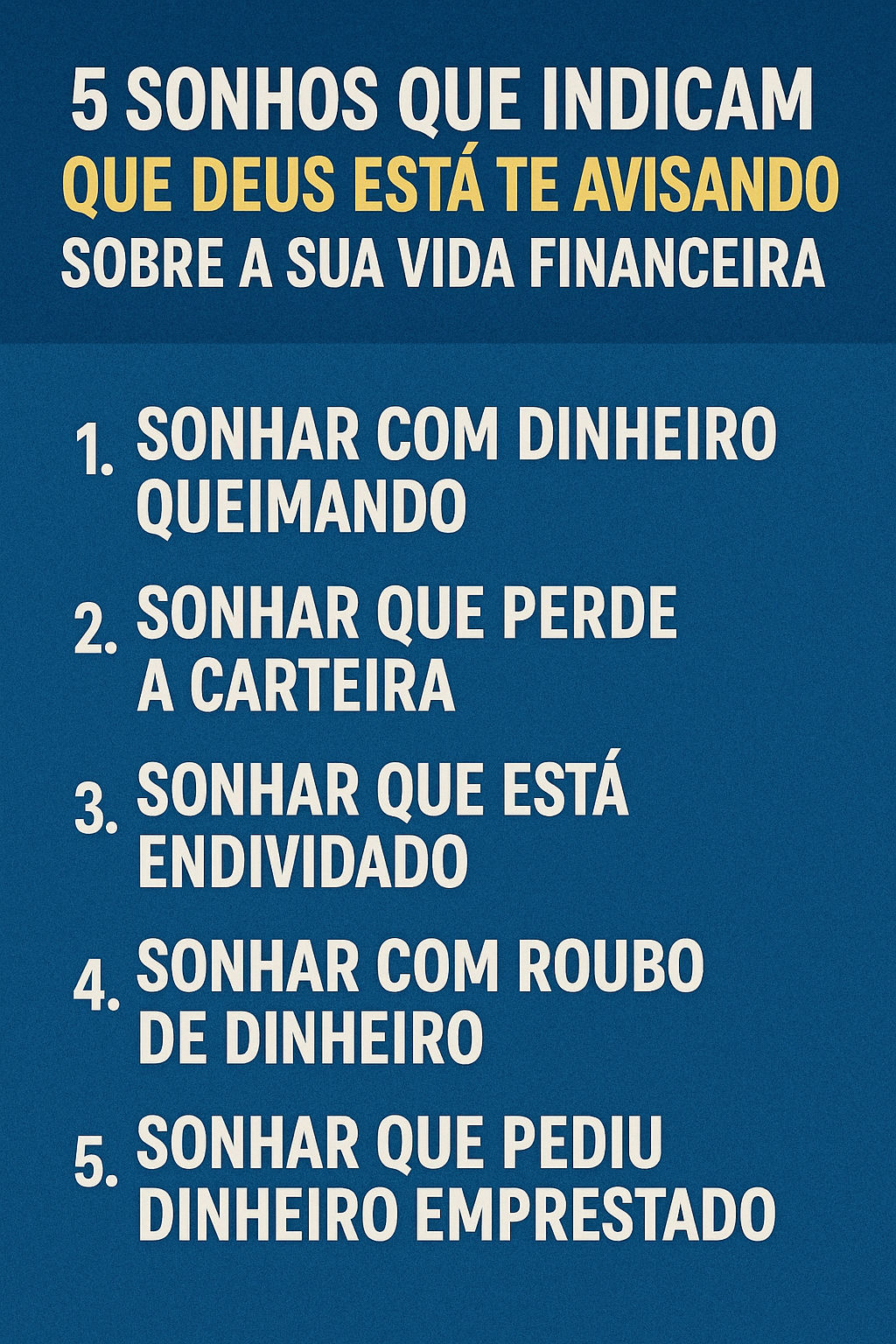 Se você está passando por dificuldades financeiras ou busca direcionamento de Deus nessa área, este artigo vai te ajudar a entender 5 sonhos que podem ser avisos divinos sobre a sua vida financeira, segundo princípios bíblicos e interpretação espiritual.