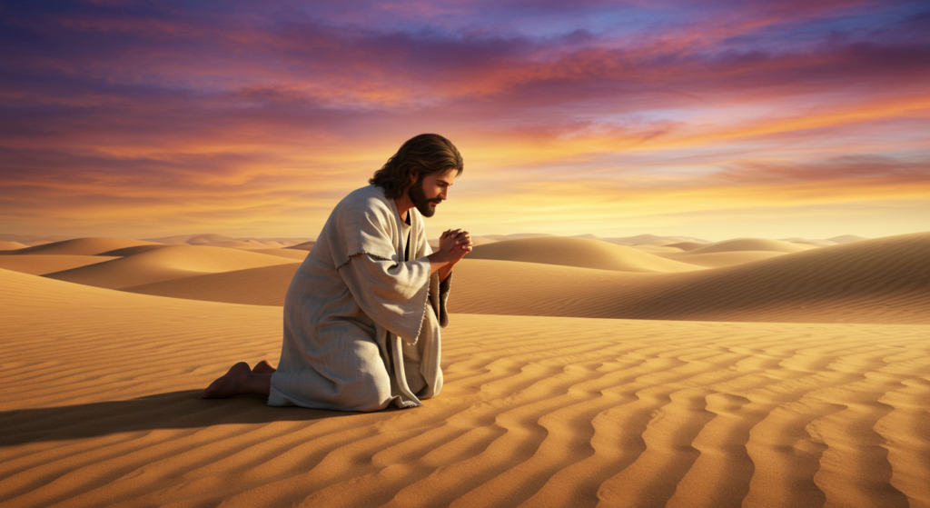 Jesus no Deserto Orando: Uma Reflexão Sobre Fé, Tentação e Entrega Total a Deus Introdução A Bíblia está cheia de